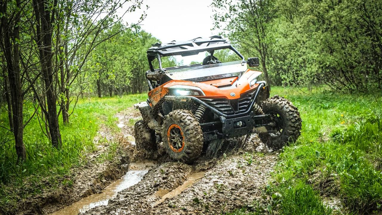 Размер платформы у ZFORCE больше, чем у ATV-моделей: она и шире, и длиннее. С одной стороны это может показаться минусом: места для маневров нужно больше. Но с другой стороны — вес квадроцикла распределяется по большей площади, а колеса расставлены дальше друг от друга. Так что, если одно колесо застрянет в грязи, остальные смогут вытянуть квадроцикл.
